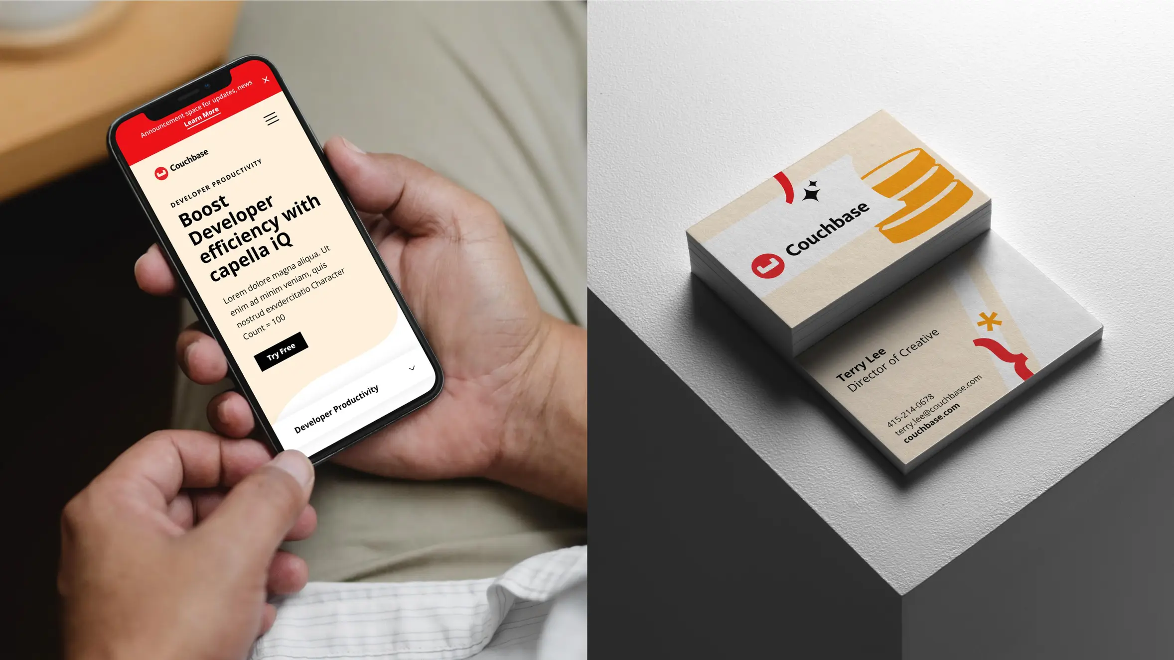 We identified Couchbase’s pain points, goals, and the key pillars from which to evolve the brand then created a visual language built from coding symbols (a nod to Couchbase’s technical refinement), warm colors, and photography to communicate their approachability. The new brand system celebrates the high-performance, scalable, modern database – syncing seamlessly from cloud to edge and empowering developers to do their best work along the way.