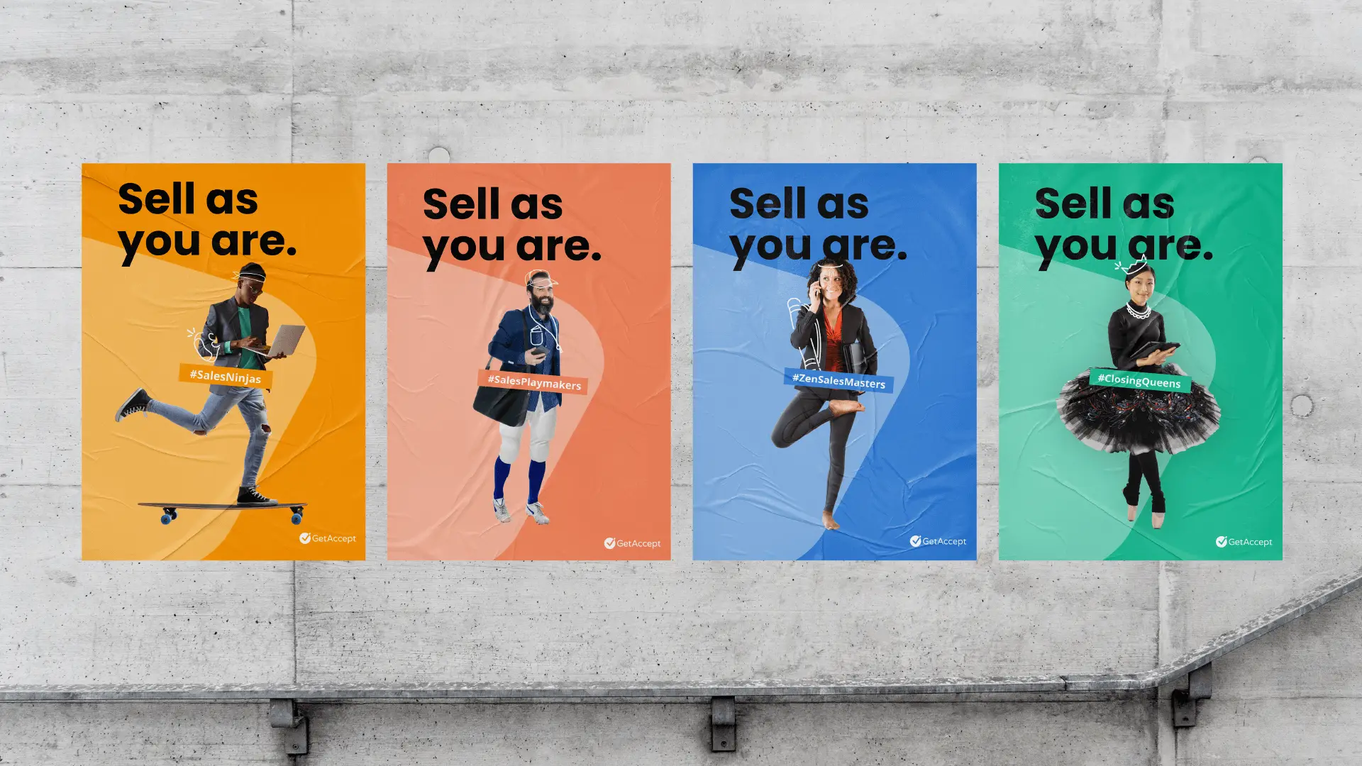 “Sell As You Are” successfully differentiated GetAccept from other sales platforms while reflecting their engaging, friendly personality in a world that all too often feels impersonal. With striking-but-friendly imagery, the campaign reinforced GetAccept’s authentic self and fundamental belief that every sales transaction ultimately comes down to personal relationship building.