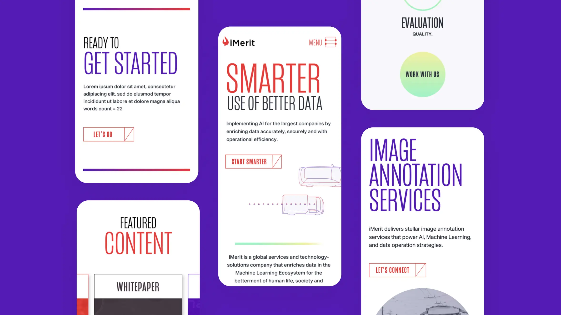 We delved deep into the company’s mission, vision, and people, via interviews and workshops, and soon realized that iMerit was a true bastion of the Silicon Valley spirit. This insight shaped an intuitive brand reflected in a website full of flexible UI and cutting-edge design. Golden ratio circles, line shapes, grids, and patterns reinforce iMerit’s technological leadership and mathematical accuracy, while secondary imagery balances the tech emphasis with iMerit’s focus on its people.