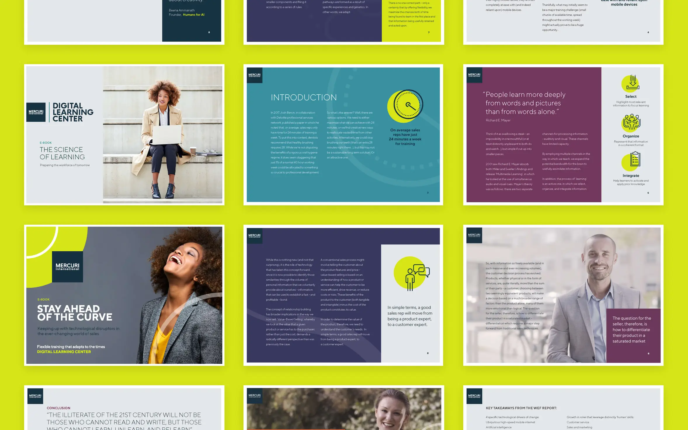 By simplifying and standardizing their messaging, Mercuri more effectively conveys what makes their company special to a worldwide audience. A truly global, visionary provider of sales excellence, Mercuri is now confident that every brochure, sales presentation, and email tells the same bold, modern, and ultimately human story. Sköna continues to support their business and brand growth through content marketing, conference branding, campaigns, and more.